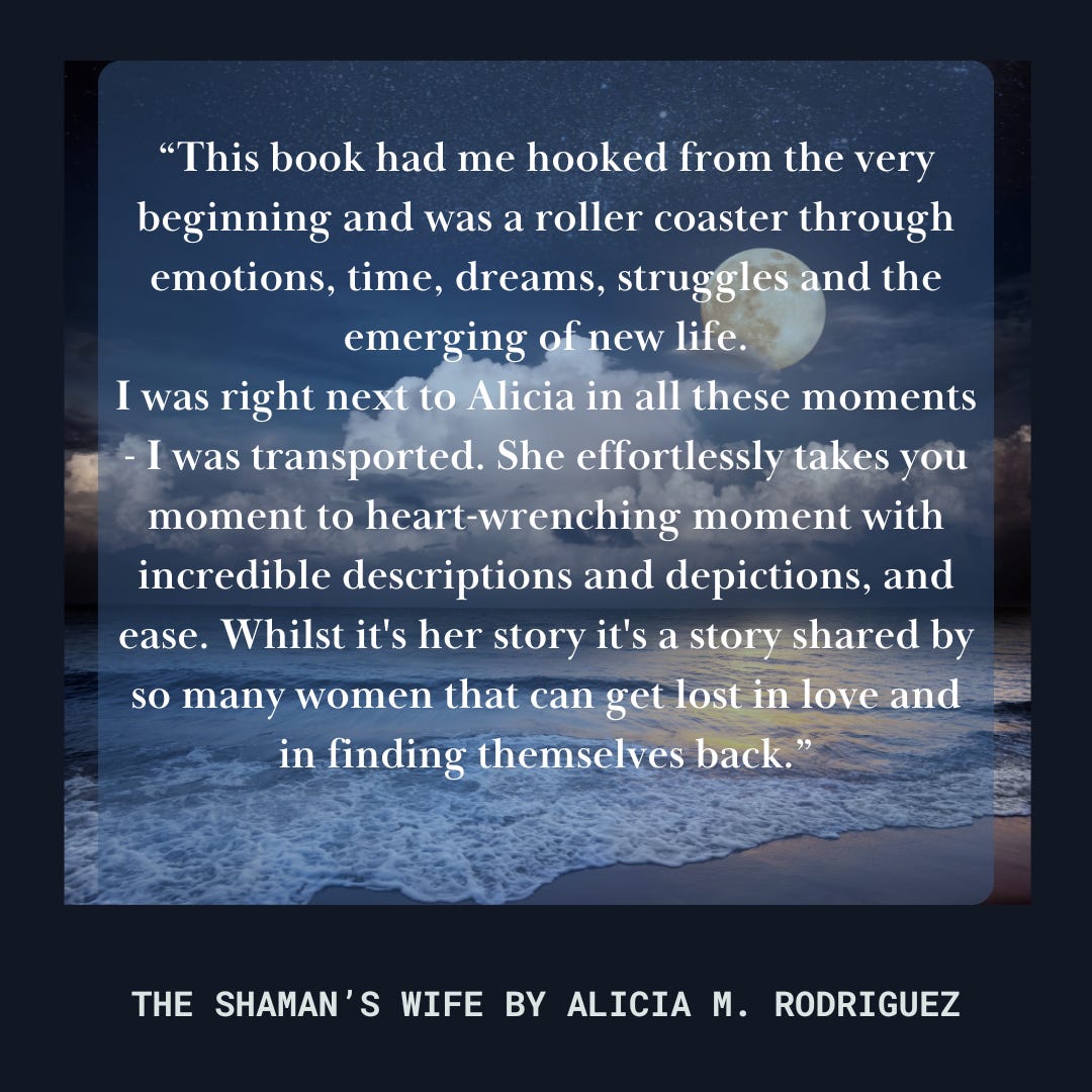An award-winning memoir that illuminates the delicate dance between personal power and love, The Shaman’s Wife shares Alicia M. Rodriguez’s journey of sacrificing her agency for love, yet ultimately discovering the transformative potential within that same love. By the book's end, a resounding message prevails. Love is boundless, but it begins with nurturing oneself. An added bonus with the audiobook includes the Companion Journal and Book Club Guide - complimentary. Click the button below to access the early purchase discount for the audiobook.
